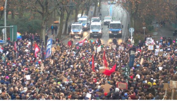 In Berlin hatte der Senat aus SPD und CDU einen Brief an alle Schulleitungen verschickt und diese aufgefordert, Schülern, die an den Protesten teilnehmen wollen, zu „informieren“, dass dies unerlaubte Fehlstunden und Probleme mit der Krankenversicherung zur Folge hätte. Dieser Drohung zum Trotz versammelten sich 3000 Schülerinnen und Schüler am Halleschen Tor und auf dem Oranienplatz.