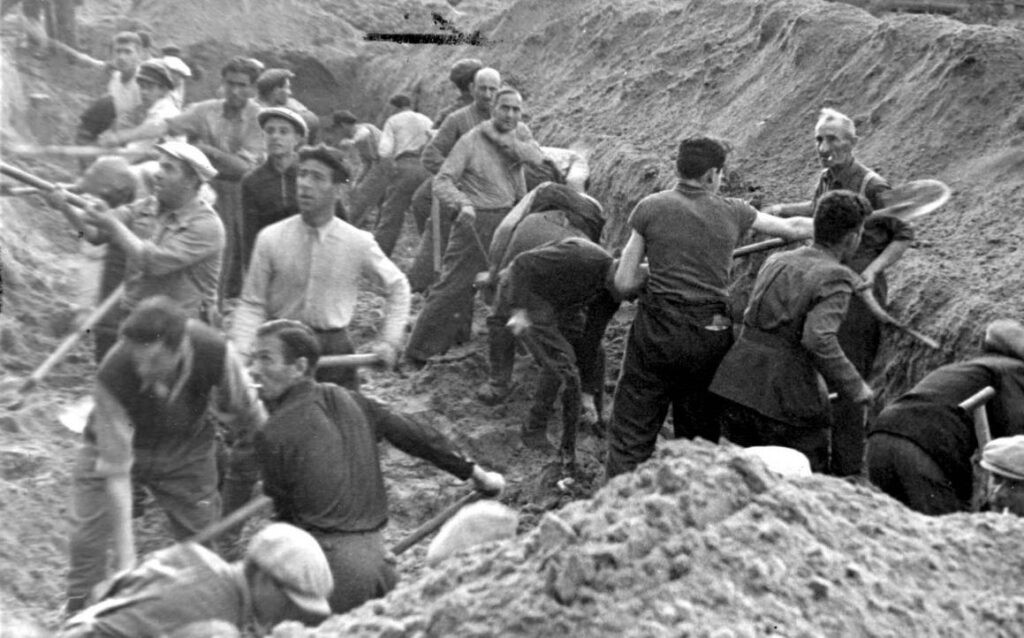 Juden schaufeln ihr eigenes Grab in Ponary, Polen, als willige Einheimische Deutschland bei der Herrschaft über Vilnius halfen. [Quelle: timesofisrael.com ]