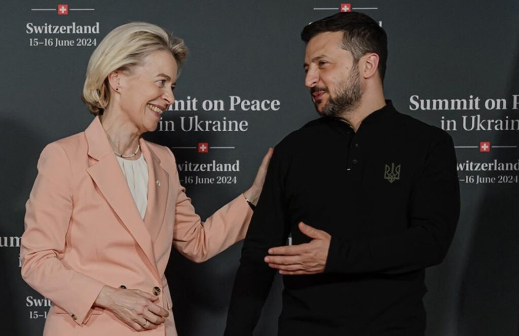 Die Präsidentin der EU-Kommission und ehemalige deutsche Verteidigungsministerin Ursula von der Leyen verkörpert erneut die Russophobie in Europa. Hier lacht sie mit Wolodymyr Selenskyj, dem ukrainischen Komiker und Schauspieler, der zum Frontmann des NATO-Stellvertreterkriegs gegen Russland in der Ukraine wurde. [Quelle: mondediplo.com ]