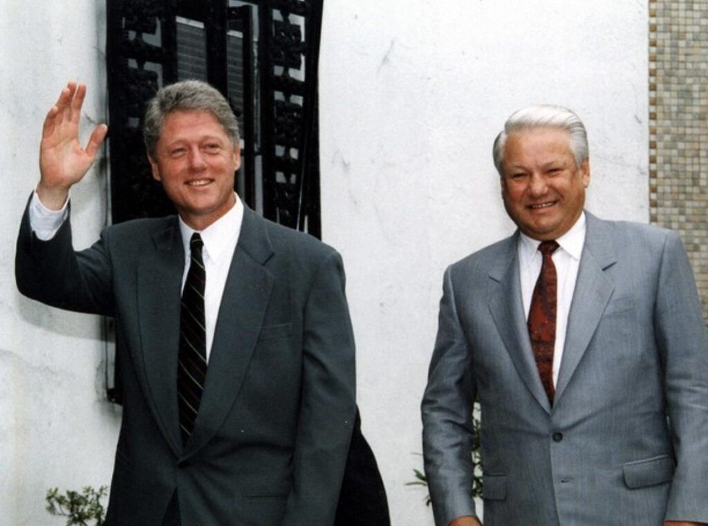 In den 1990er Jahren marschierte ein triumphierendes Amerika (vertreten durch Bill Clinton) in Osteuropa ein, während ein gedemütigtes Russland (vertreten durch Boris Jelzin) nur zusehen konnte. [Quelle: reddit.com ]